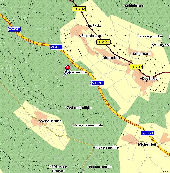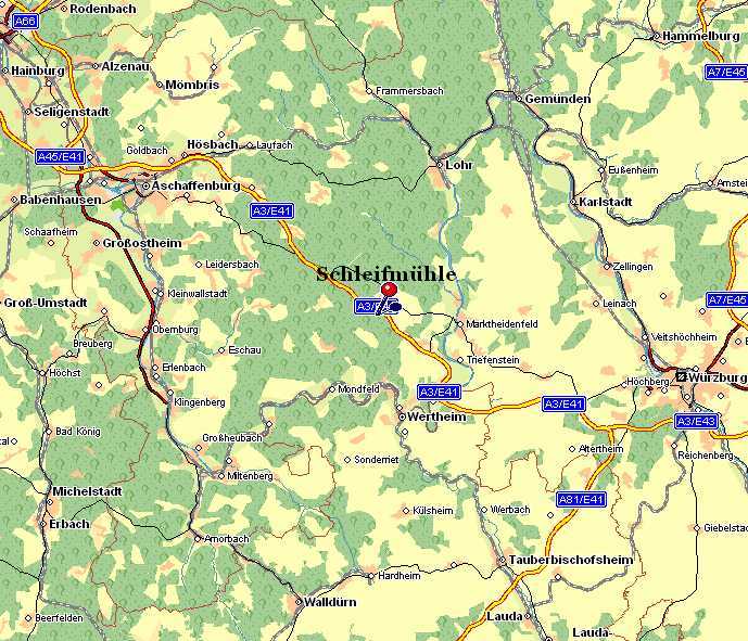 Von Frankfurt/Würzburg über die A3 kommend bis zur Autbahnabfahrt "Rohrbrunn/Spessart" - Richtung MARKTHEIDENFELD - ca.10km Wald - bei STRASSLÜCKE rechts - ca. 1km Bischbrunn - - immer sturgeradeaus (nicht Vorfahrtstraße beachten!) - bis Schotterstrecke - Schotterstrecke/Waldstrecke ca. 5km - Das Ziel: DIE SCHLEIFMÜHLE :-)